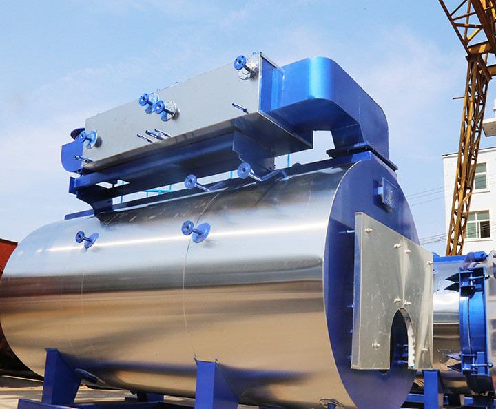 YYW型燃油燃气导热油炉采用的是卧式三回程结构设计,锅炉主要分为控制器和炉体两大部分,其中炉体主要由燃烧器、炉筒和节能器三部分组成,炉筒内部布置有三层圆形盘管,内层为直接受燃烧辐热面,亦是一回程;第二和第三回程则是在外部两层烟道管束中进行烟气对流换热,高温烟气随后进入炉筒尾部的节能器进行处理,然后通过烟囱排出炉外。